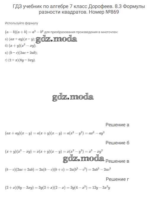 ОТВЕТ на задание № 869 Учебник по Алгебре 7 класс Дорофеев Академический школьный учебник
