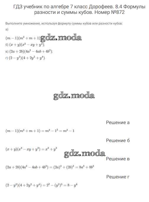 ОТВЕТ на задание № 872 Учебник по Алгебре 7 класс Дорофеев Академический школьный учебник