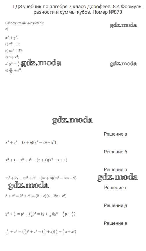 ОТВЕТ на задание № 873 Учебник по Алгебре 7 класс Дорофеев Академический школьный учебник