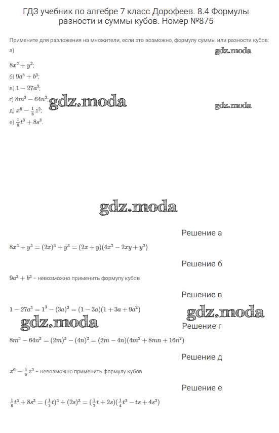ОТВЕТ на задание № 875 Учебник по Алгебре 7 класс Дорофеев Академический школьный учебник