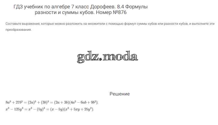 ОТВЕТ на задание № 876 Учебник по Алгебре 7 класс Дорофеев Академический школьный учебник