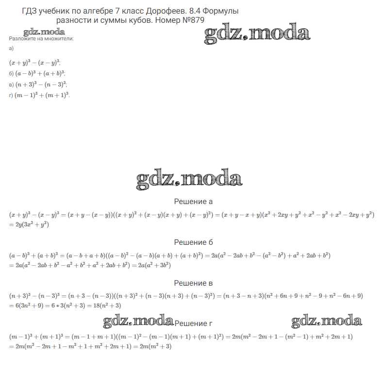 ОТВЕТ на задание № 879 Учебник по Алгебре 7 класс Дорофеев Академический школьный учебник