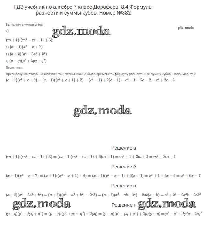 ОТВЕТ на задание № 882 Учебник по Алгебре 7 класс Дорофеев Академический школьный учебник
