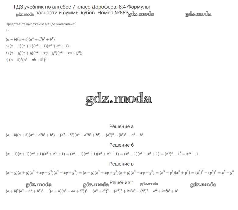 ОТВЕТ на задание № 883 Учебник по Алгебре 7 класс Дорофеев Академический школьный учебник