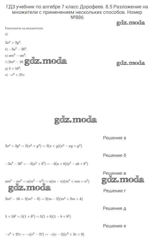 ОТВЕТ на задание № 886 Учебник по Алгебре 7 класс Дорофеев Академический школьный учебник