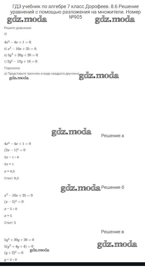 ОТВЕТ на задание № 905 Учебник по Алгебре 7 класс Дорофеев Академический школьный учебник