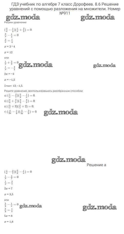 ОТВЕТ на задание № 911 Учебник по Алгебре 7 класс Дорофеев Академический школьный учебник