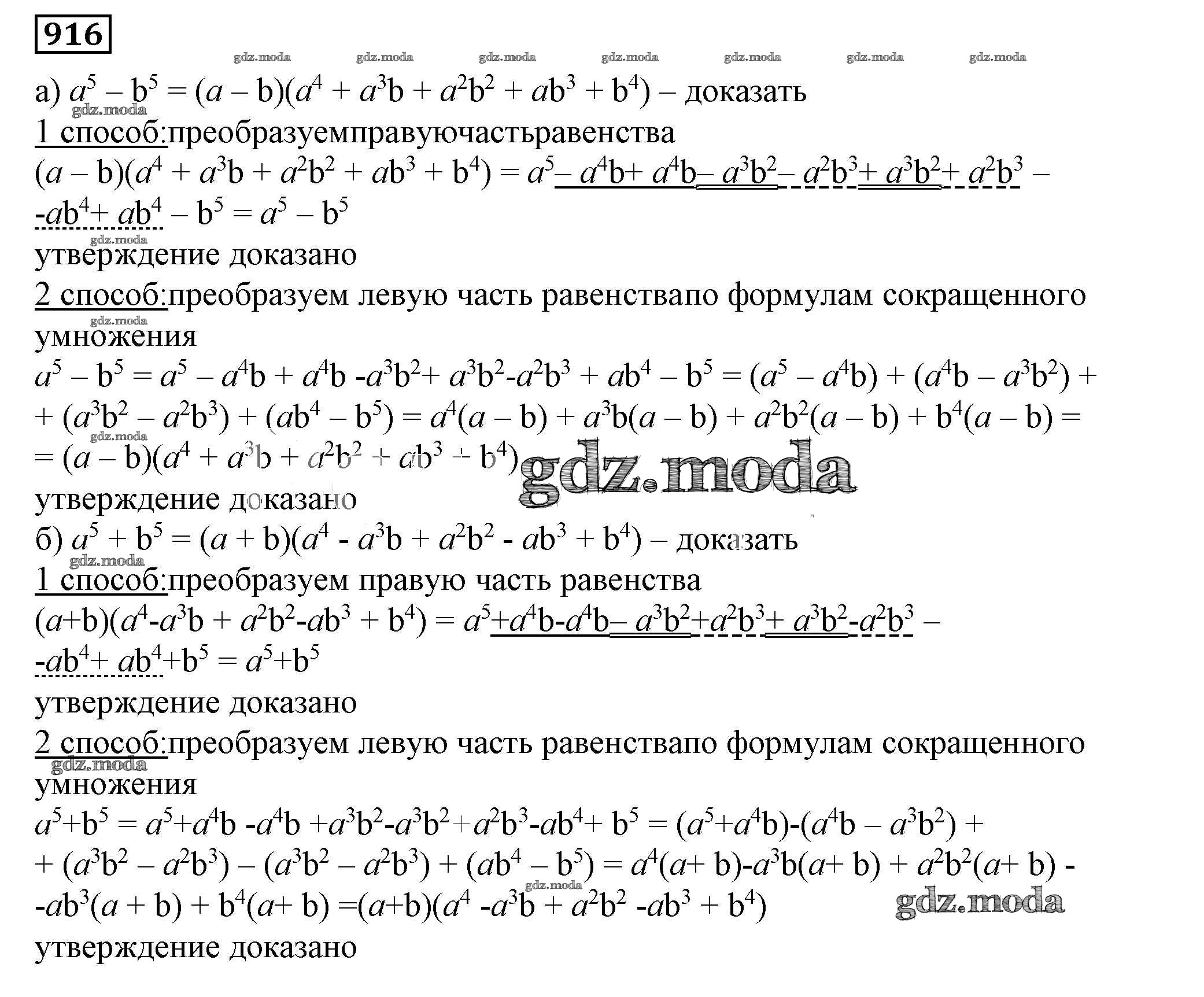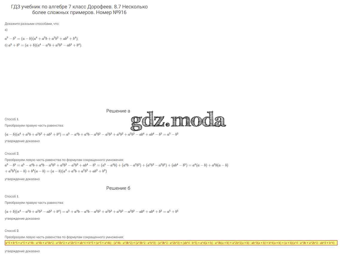 ОТВЕТ на задание № 916 Учебник по Алгебре 7 класс Дорофеев Академический школьный учебник