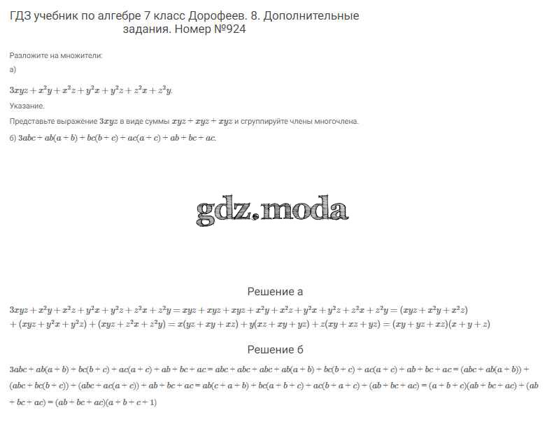 ОТВЕТ на задание № 924 Учебник по Алгебре 7 класс Дорофеев Академический школьный учебник