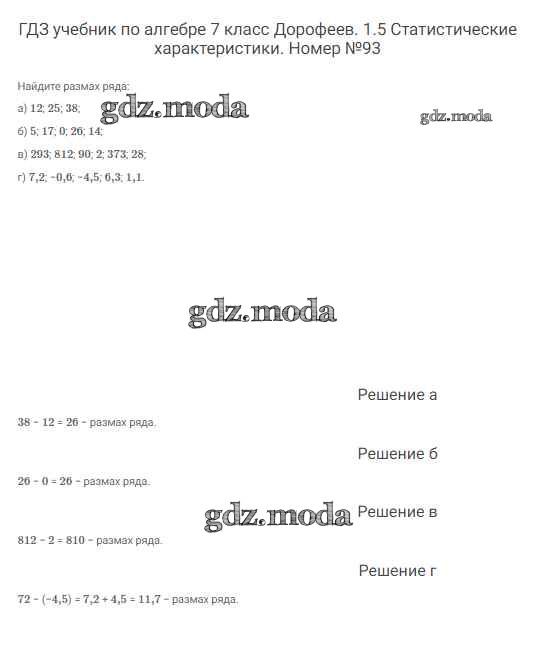 ОТВЕТ на задание № 93 Учебник по Алгебре 7 класс Дорофеев Академический школьный учебник