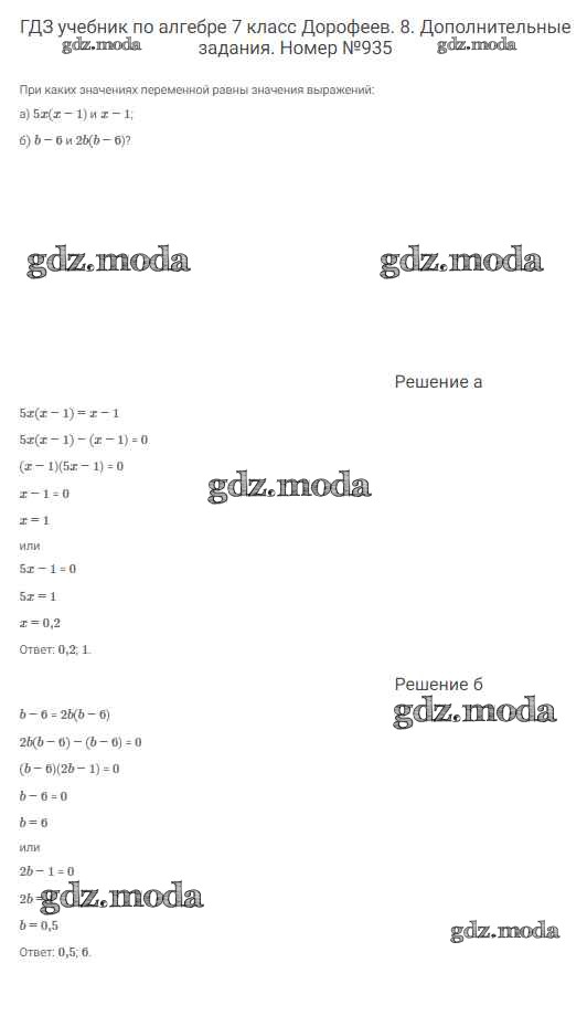 ОТВЕТ на задание № 935 Учебник по Алгебре 7 класс Дорофеев Академический школьный учебник