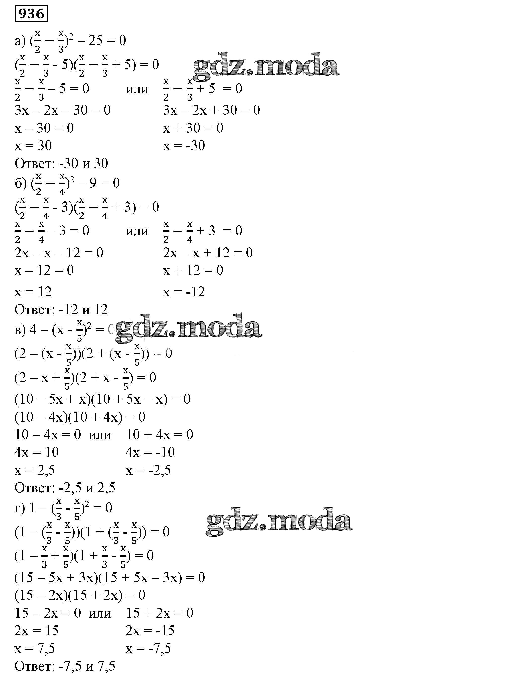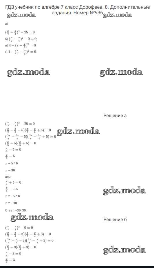 ОТВЕТ на задание № 936 Учебник по Алгебре 7 класс Дорофеев Академический школьный учебник