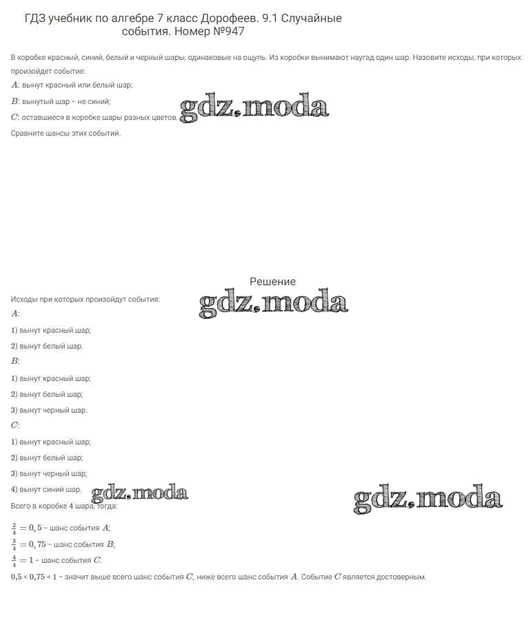 ОТВЕТ на задание № 947 Учебник по Алгебре 7 класс Дорофеев Академический школьный учебник