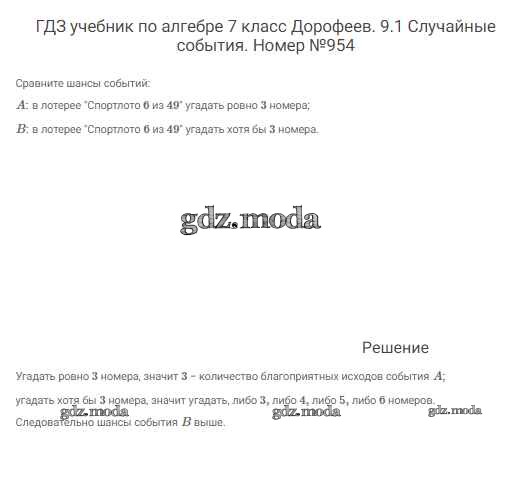 ОТВЕТ на задание № 954 Учебник по Алгебре 7 класс Дорофеев Академический школьный учебник