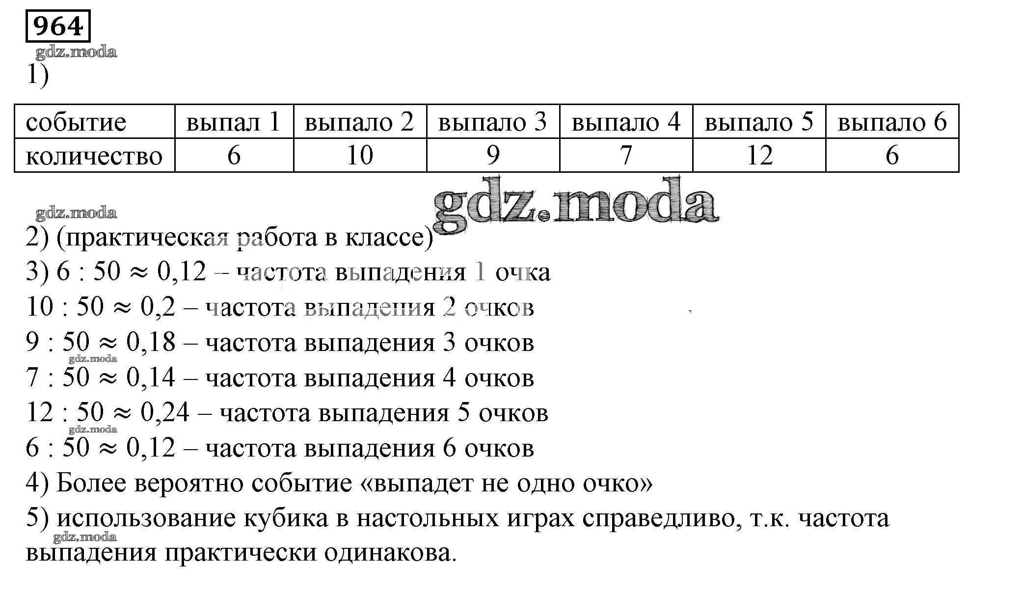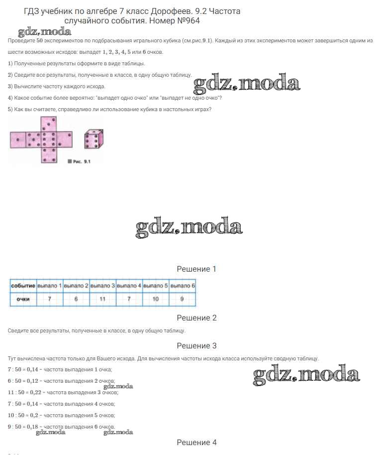 ОТВЕТ на задание № 964 Учебник по Алгебре 7 класс Дорофеев Академический школьный учебник