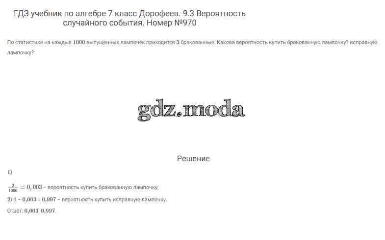 ОТВЕТ на задание № 970 Учебник по Алгебре 7 класс Дорофеев Академический школьный учебник