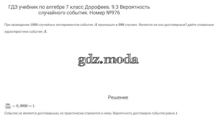 ОТВЕТ на задание № 976 Учебник по Алгебре 7 класс Дорофеев Академический школьный учебник