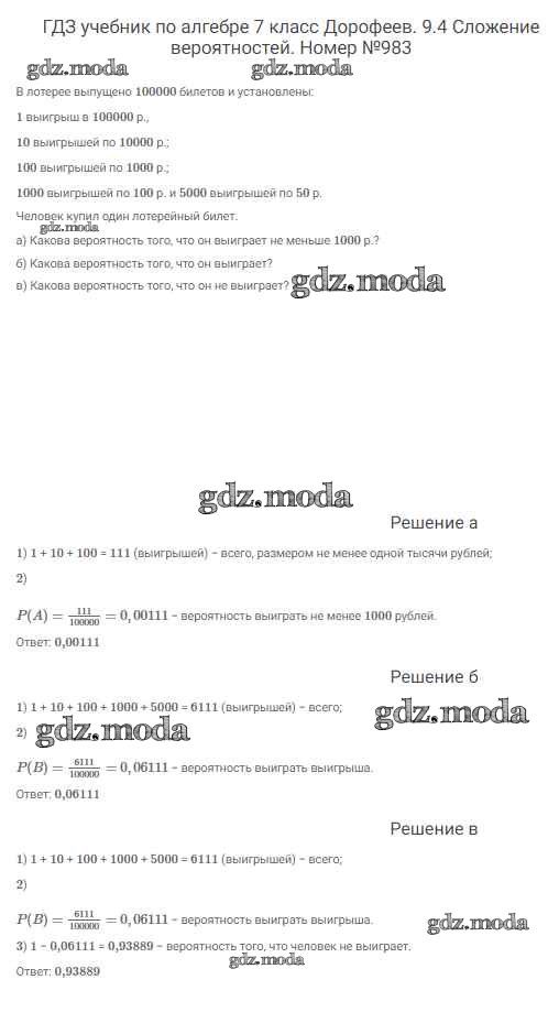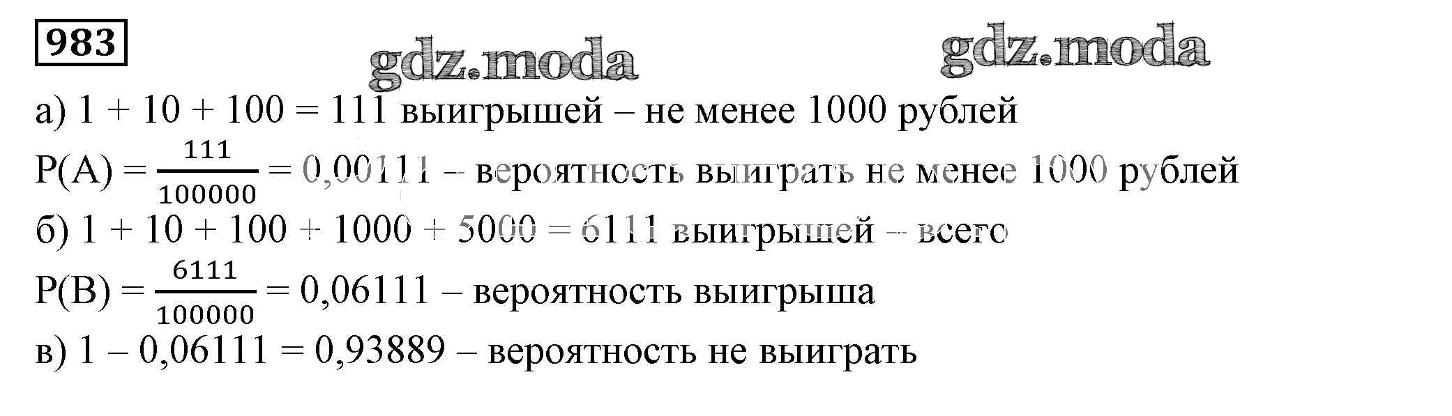 ОТВЕТ на задание № 983 Учебник по Алгебре 7 класс Дорофеев Академический школьный учебник