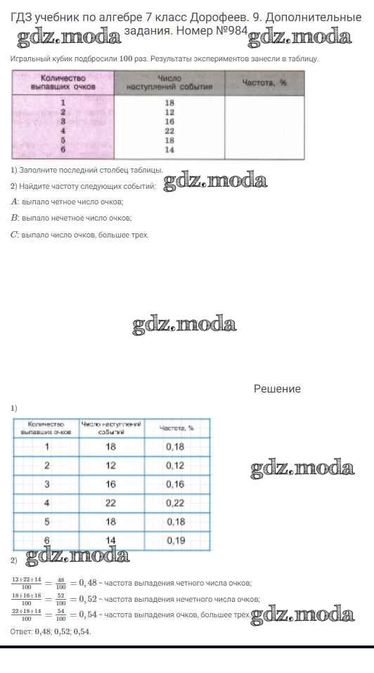 ОТВЕТ на задание № 984 Учебник по Алгебре 7 класс Дорофеев Академический школьный учебник