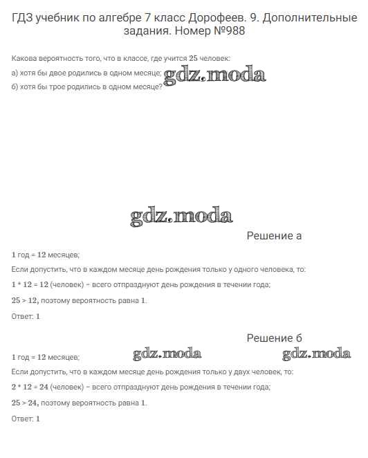 ОТВЕТ на задание № 988 Учебник по Алгебре 7 класс Дорофеев Академический школьный учебник