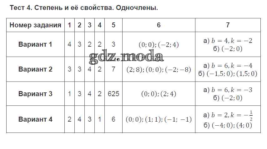 ГДЗ решение к заданию № 4 Алгебра 7 класс тематические тесты Дудницын Ю.П. Просвещение 2011 ФГОС бесплатно на гдз.мода!