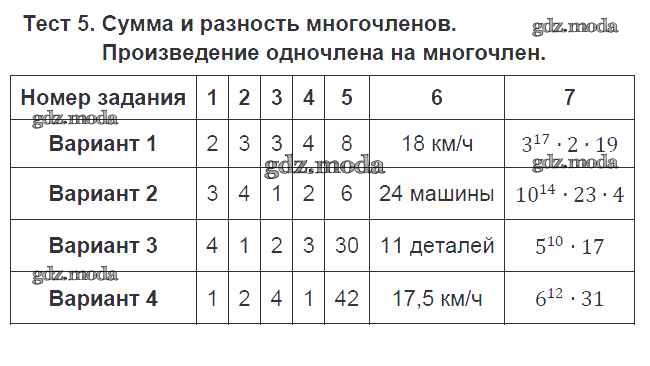 ГДЗ решение к заданию № 5 Алгебра 7 класс тематические тесты Дудницын Ю.П. Просвещение 2011 ФГОС бесплатно на гдз.мода!