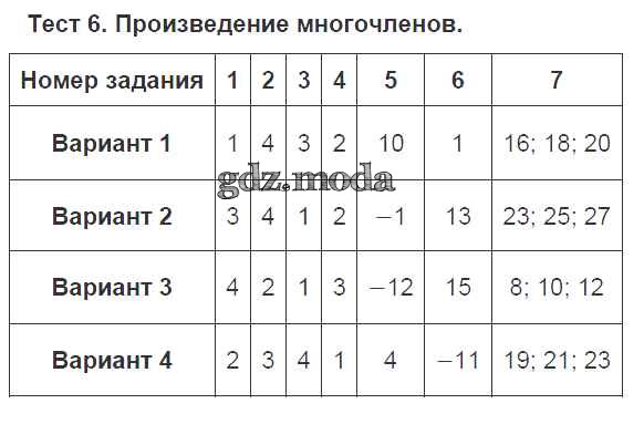ГДЗ решение к заданию № 6 Алгебра 7 класс тематические тесты Дудницын Ю.П. Просвещение 2011 ФГОС бесплатно на гдз.мода!