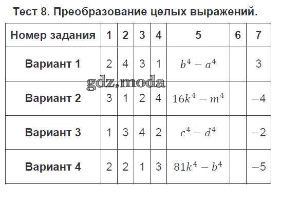 ГДЗ решение к заданию № 8 Алгебра 7 класс тематические тесты Дудницын Ю.П. Просвещение 2011 ФГОС бесплатно на гдз.мода!