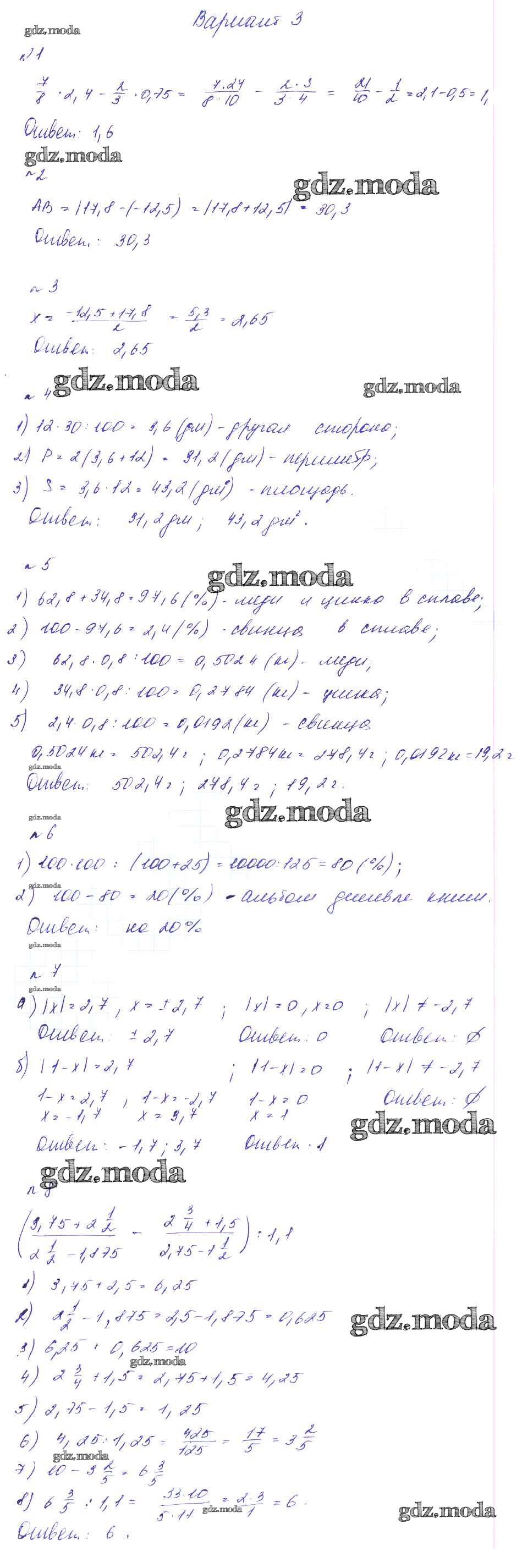 ГДЗ решение к заданию № Вариант 3 Алгебра 7 класс дидактические материалы. Методические рекомендации Феоктистов И.Е. Мнемозина 2016 Углубленный уровень ФГОС бесплатно на гдз.мода!