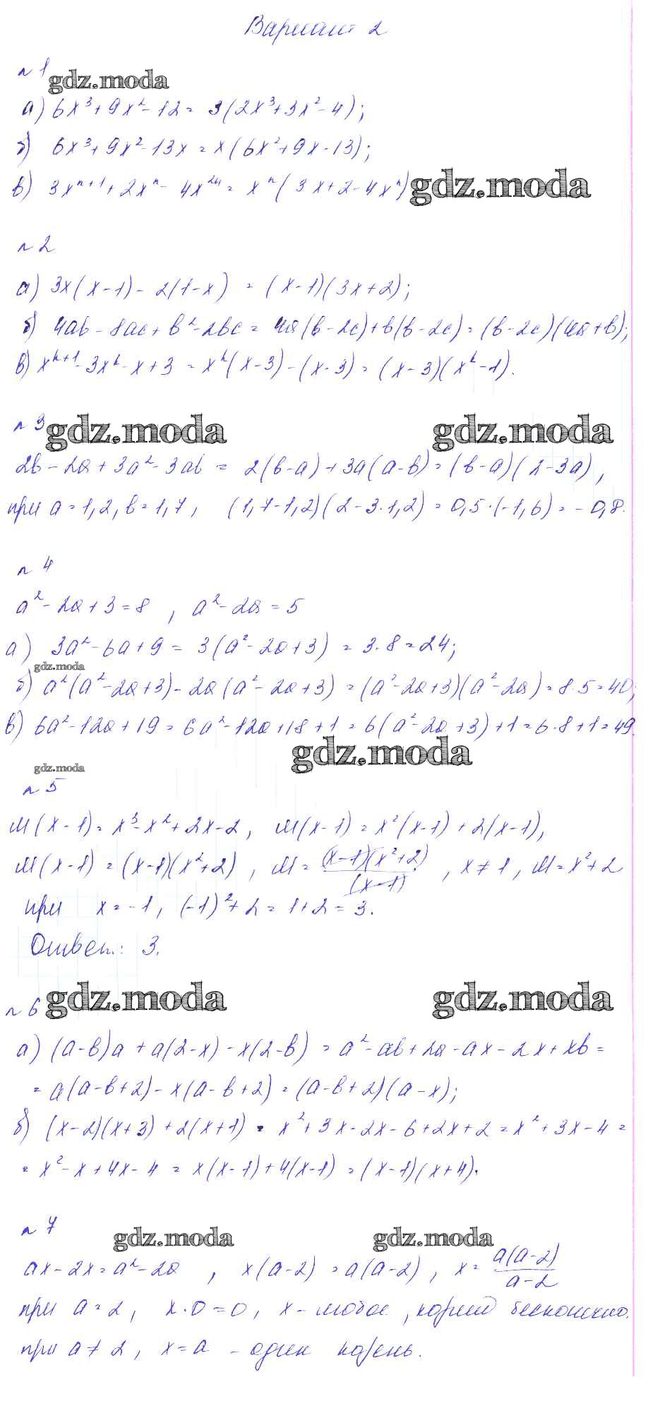 ГДЗ решение к заданию № Вариант 2 Алгебра 7 класс дидактические материалы. Методические рекомендации Феоктистов И.Е. Мнемозина 2016 Углубленный уровень ФГОС бесплатно на гдз.мода!