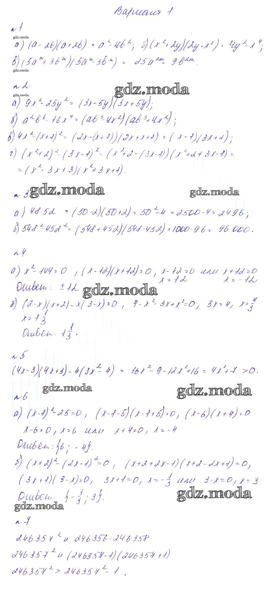 ГДЗ решение к заданию № Вариант 1 Алгебра 7 класс дидактические материалы. Методические рекомендации Феоктистов И.Е. Мнемозина 2016 Углубленный уровень ФГОС бесплатно на гдз.мода!