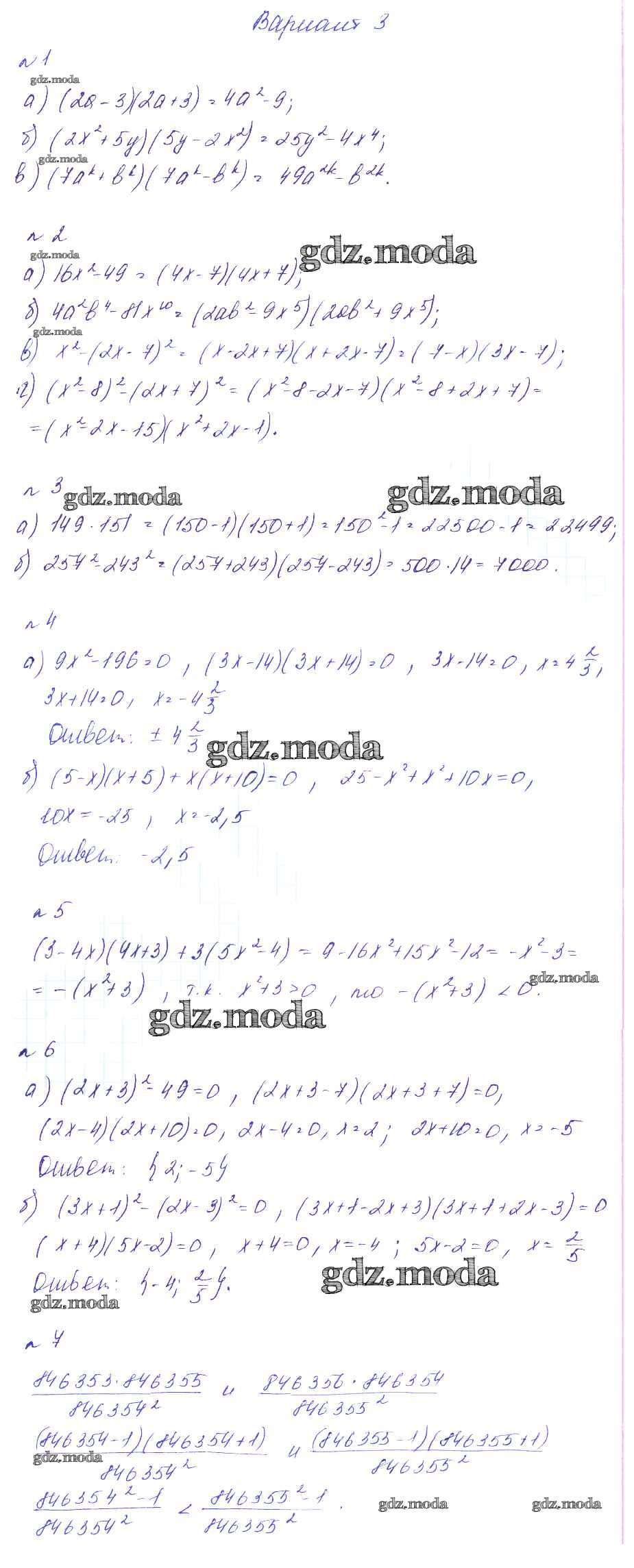 ГДЗ решение к заданию № Вариант 3 Алгебра 7 класс дидактические материалы. Методические рекомендации Феоктистов И.Е. Мнемозина 2016 Углубленный уровень ФГОС бесплатно на гдз.мода!