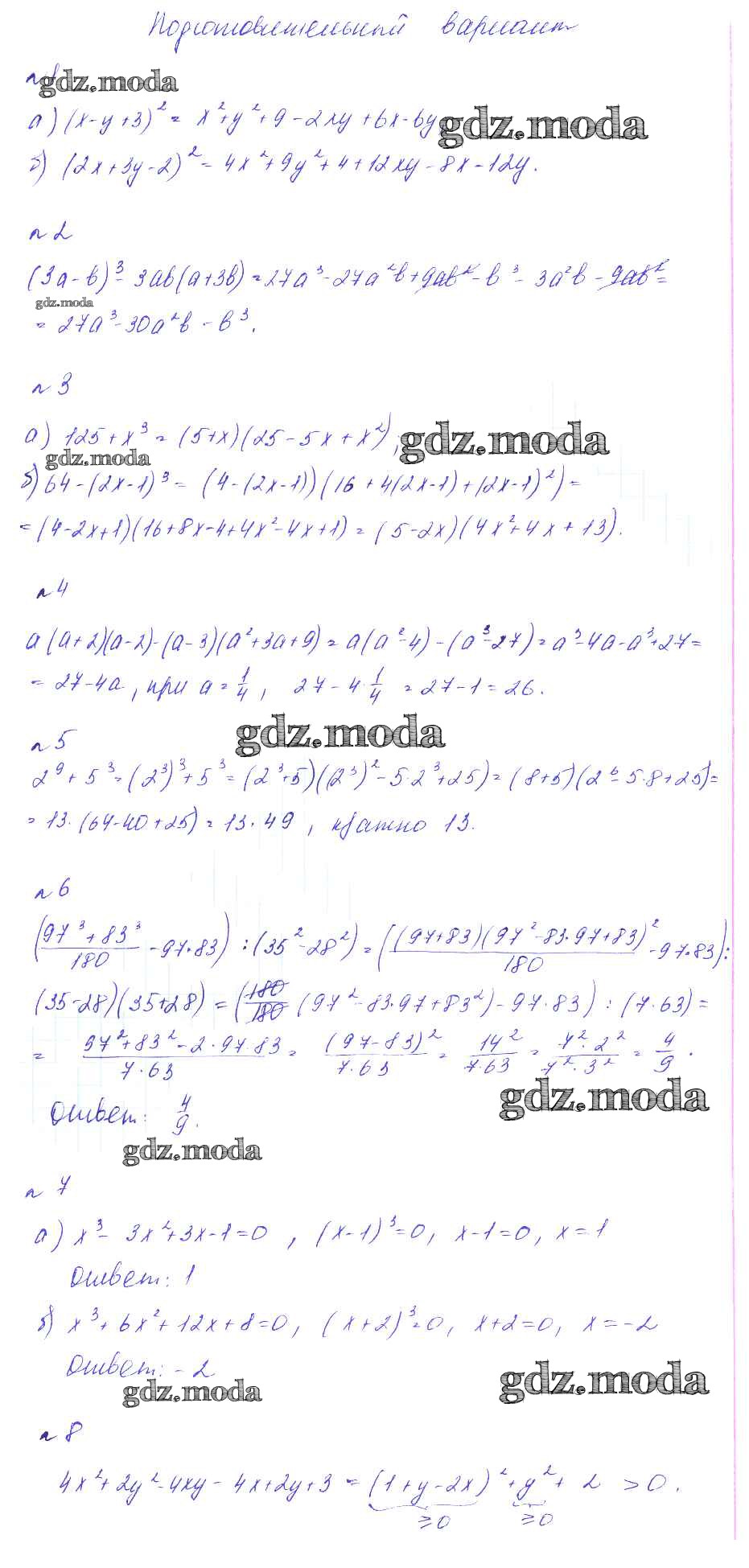 ОТВЕТ на задание № Подготовительный вариант Дидактические материалы по Алгебре 7 класс Феоктистов Углубленный уровень