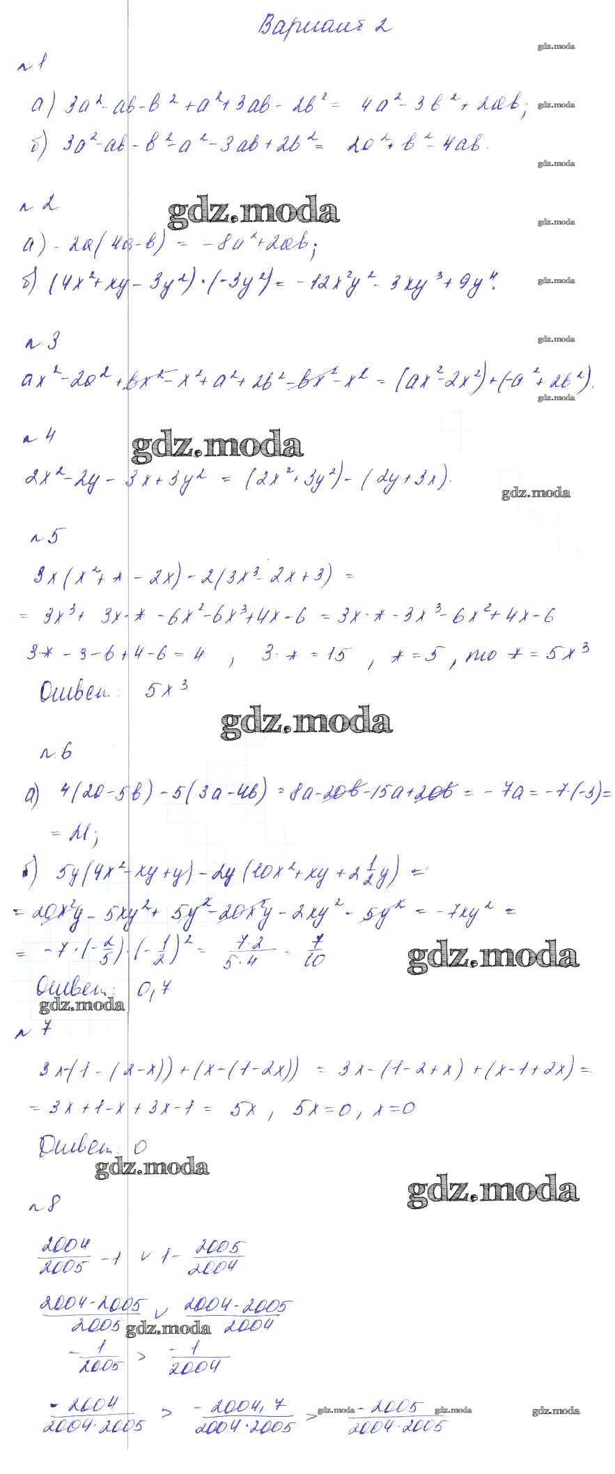 ГДЗ решение к заданию № Вариант 2 Алгебра 7 класс дидактические материалы. Методические рекомендации Феоктистов И.Е. Мнемозина 2016 Углубленный уровень ФГОС бесплатно на гдз.мода!