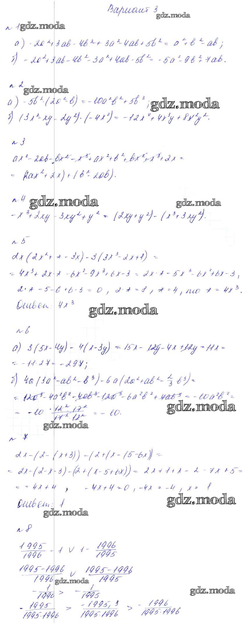 ГДЗ решение к заданию № Вариант 3 Алгебра 7 класс дидактические материалы. Методические рекомендации Феоктистов И.Е. Мнемозина 2016 Углубленный уровень ФГОС бесплатно на гдз.мода!