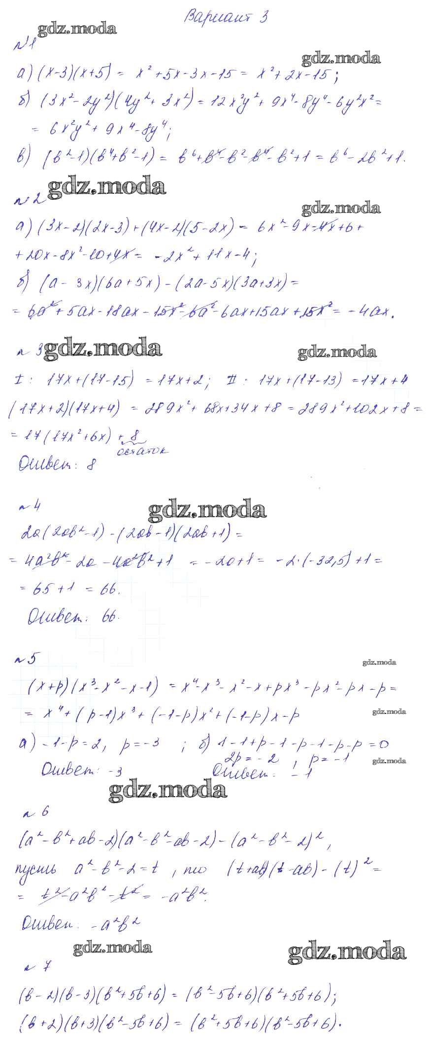 ГДЗ решение к заданию № Вариант 3 Алгебра 7 класс дидактические материалы. Методические рекомендации Феоктистов И.Е. Мнемозина 2016 Углубленный уровень ФГОС бесплатно на гдз.мода!