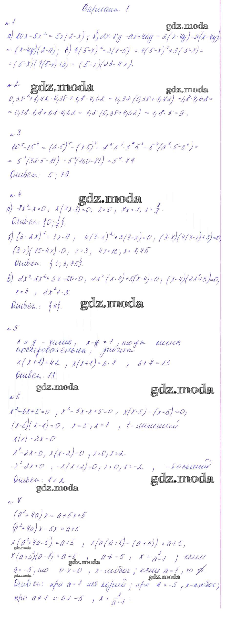 ГДЗ решение к заданию № Вариант 1 Алгебра 7 класс дидактические материалы. Методические рекомендации Феоктистов И.Е. Мнемозина 2016 Углубленный уровень ФГОС бесплатно на гдз.мода!