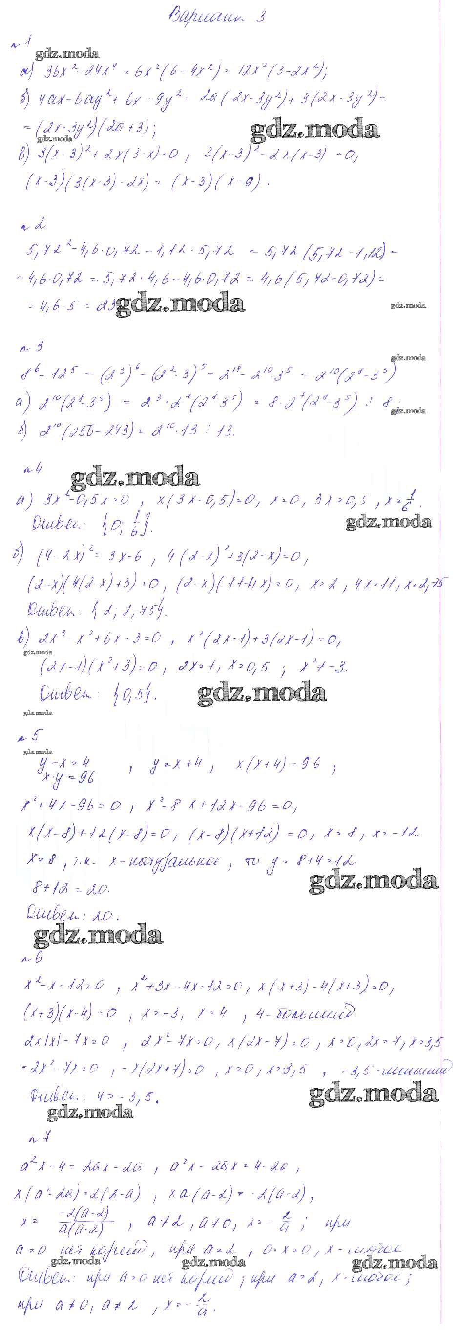 ГДЗ решение к заданию № Вариант 3 Алгебра 7 класс дидактические материалы. Методические рекомендации Феоктистов И.Е. Мнемозина 2016 Углубленный уровень ФГОС бесплатно на гдз.мода!