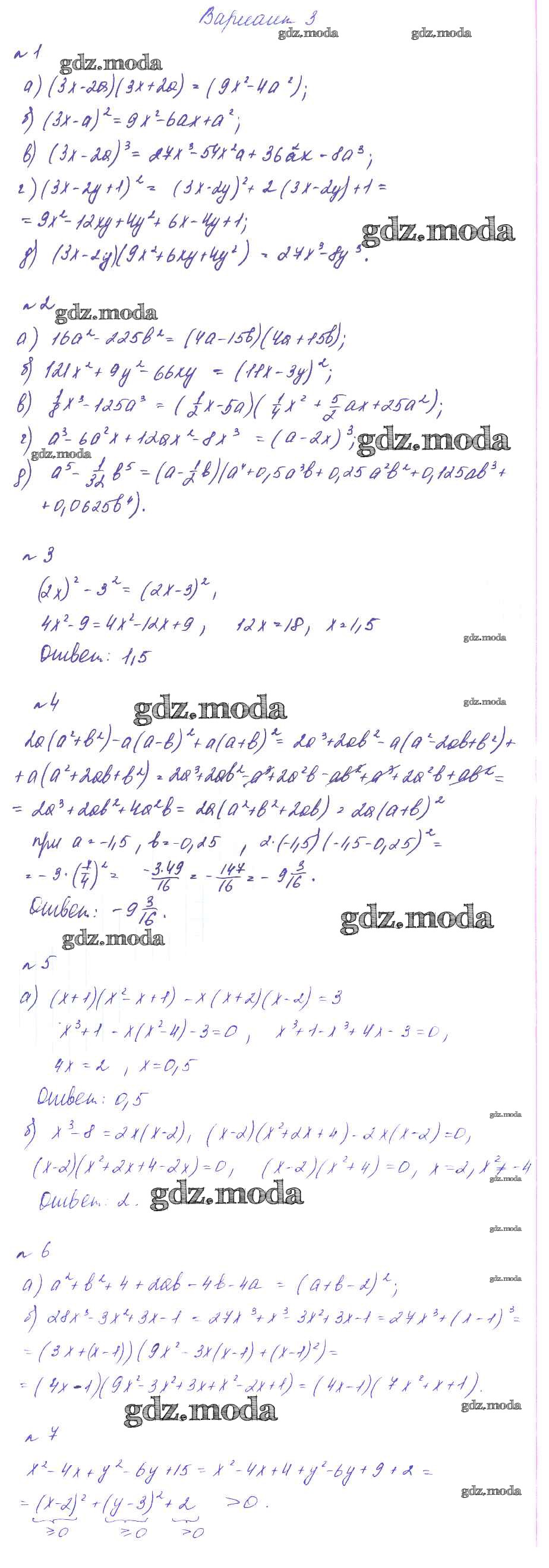 ГДЗ решение к заданию № Вариант 3 Алгебра 7 класс дидактические материалы. Методические рекомендации Феоктистов И.Е. Мнемозина 2016 Углубленный уровень ФГОС бесплатно на гдз.мода!