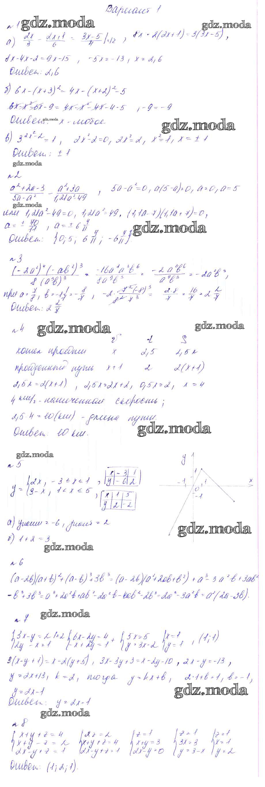 ГДЗ решение к заданию № Вариант 1 Алгебра 7 класс дидактические материалы. Методические рекомендации Феоктистов И.Е. Мнемозина 2016 Углубленный уровень ФГОС бесплатно на гдз.мода!