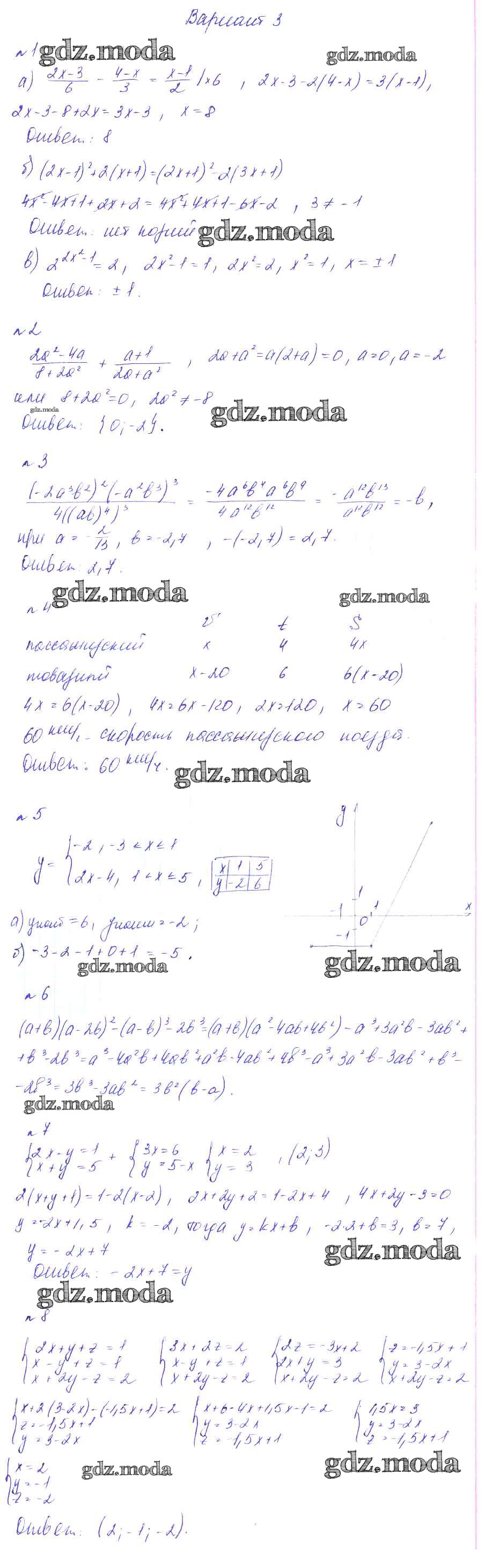 ГДЗ решение к заданию № Вариант 3 Алгебра 7 класс дидактические материалы. Методические рекомендации Феоктистов И.Е. Мнемозина 2016 Углубленный уровень ФГОС бесплатно на гдз.мода!