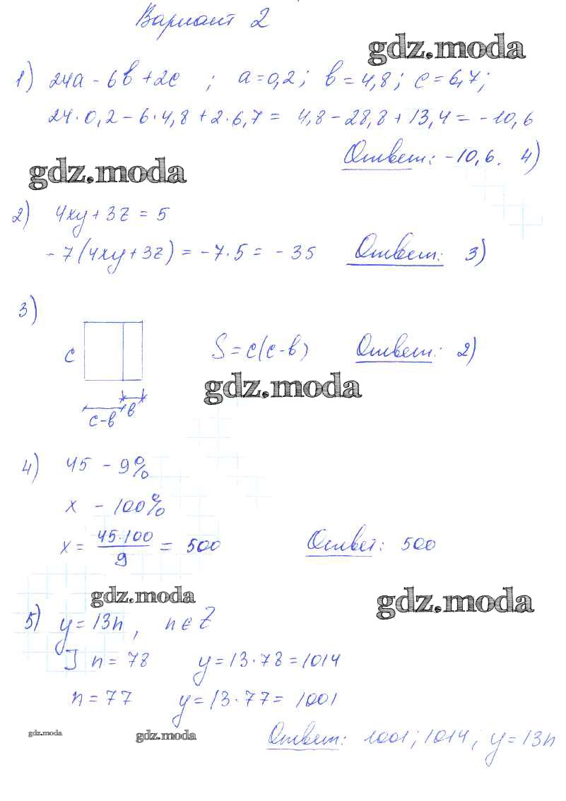 ГДЗ решение к заданию № вариант 2 Алгебра 7 класс самостоятельные и контрольные работы Глазков Ю.А. (к уч.Макарычева) Экзамен 2019 ФГОС бесплатно на гдз.мода!