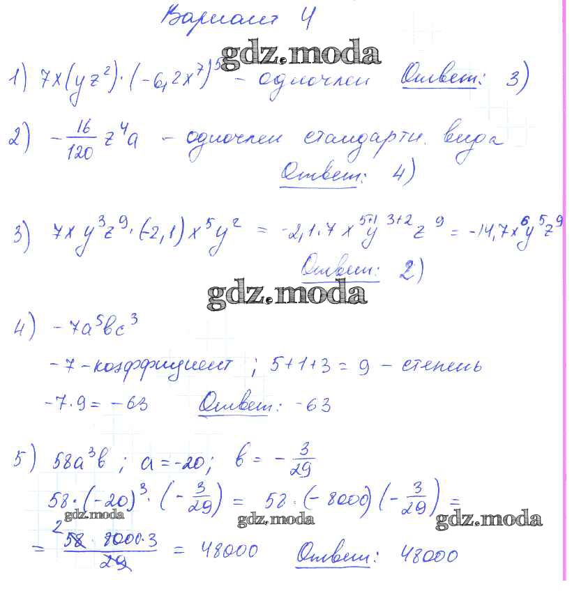 ГДЗ решение к заданию № вариант 4 Алгебра 7 класс самостоятельные и контрольные работы Глазков Ю.А. (к уч.Макарычева) Экзамен 2019 ФГОС бесплатно на гдз.мода!