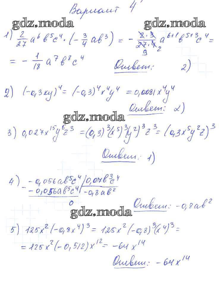 ГДЗ решение к заданию № вариант 4 Алгебра 7 класс самостоятельные и контрольные работы Глазков Ю.А. (к уч.Макарычева) Экзамен 2019 ФГОС бесплатно на гдз.мода!