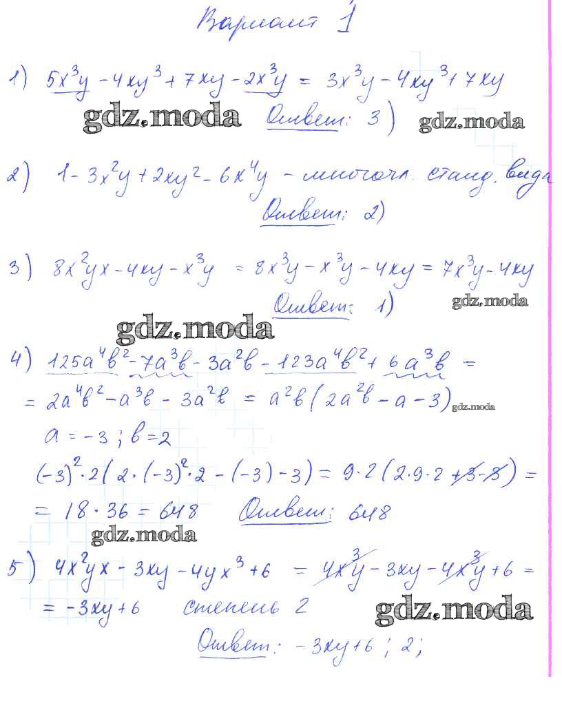 ГДЗ решение к заданию № вариант 1 Алгебра 7 класс самостоятельные и контрольные работы Глазков Ю.А. (к уч.Макарычева) Экзамен 2019 ФГОС бесплатно на гдз.мода!