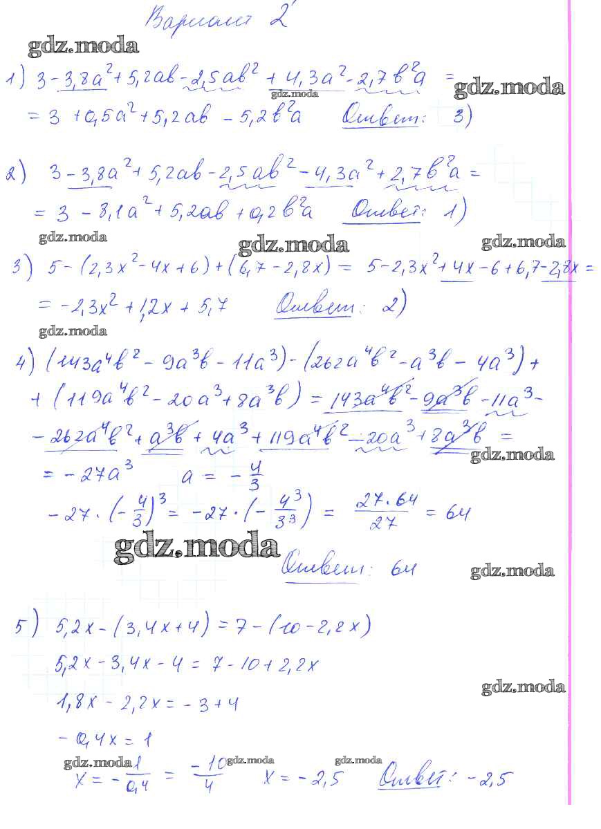 ГДЗ решение к заданию № вариант 2 Алгебра 7 класс самостоятельные и контрольные работы Глазков Ю.А. (к уч.Макарычева) Экзамен 2019 ФГОС бесплатно на гдз.мода!