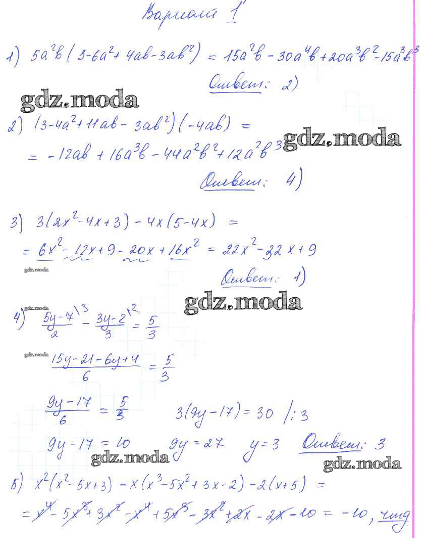 ГДЗ решение к заданию № вариант 1 Алгебра 7 класс самостоятельные и контрольные работы Глазков Ю.А. (к уч.Макарычева) Экзамен 2019 ФГОС бесплатно на гдз.мода!