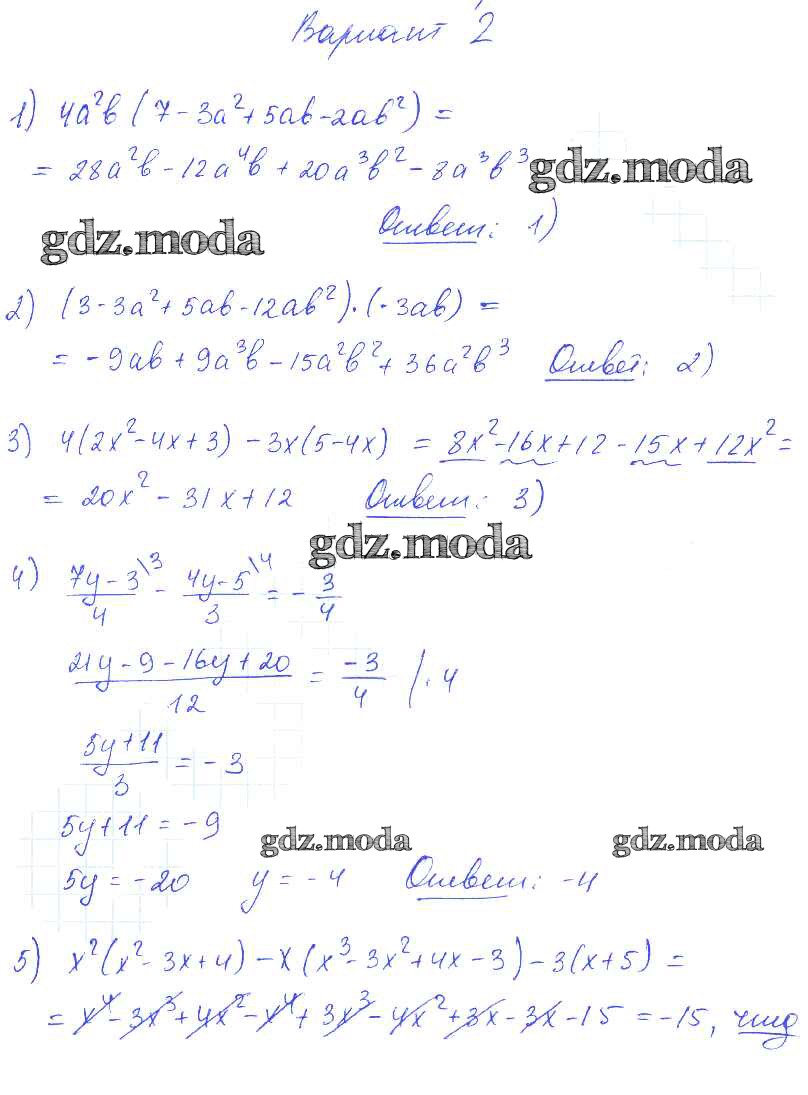 ГДЗ решение к заданию № вариант 2 Алгебра 7 класс самостоятельные и контрольные работы Глазков Ю.А. (к уч.Макарычева) Экзамен 2019 ФГОС бесплатно на гдз.мода!