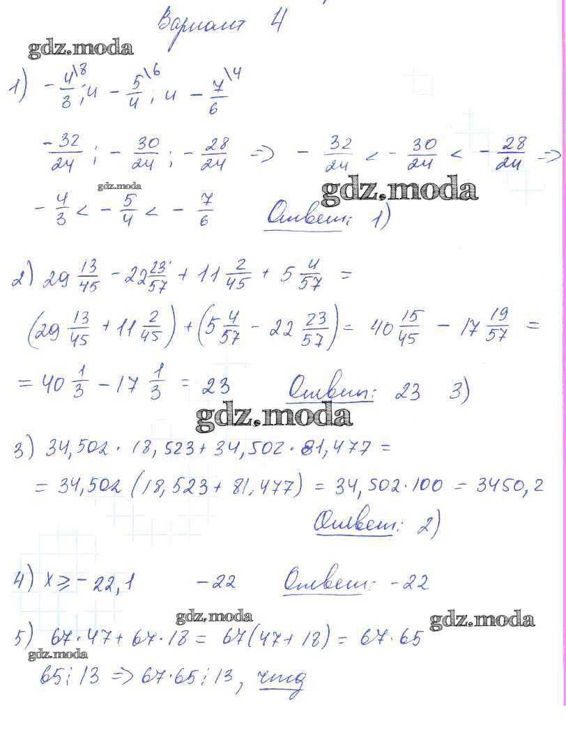 ОТВЕТ на задание № вариант 4 Самостоятельные и контрольные работы по Алгебре 7 класс Глазков УМК