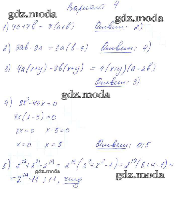 ГДЗ решение к заданию № вариант 4 Алгебра 7 класс самостоятельные и контрольные работы Глазков Ю.А. (к уч.Макарычева) Экзамен 2019 ФГОС бесплатно на гдз.мода!